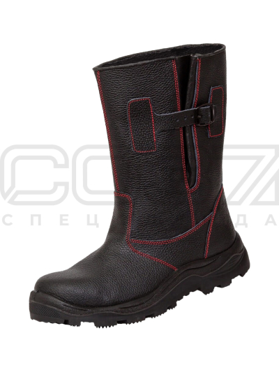 - Кожаный ремешок со стальной пряжкой-застёжкой регулирует голенище по объёму и надёжно фиксирует сапог на ноге.