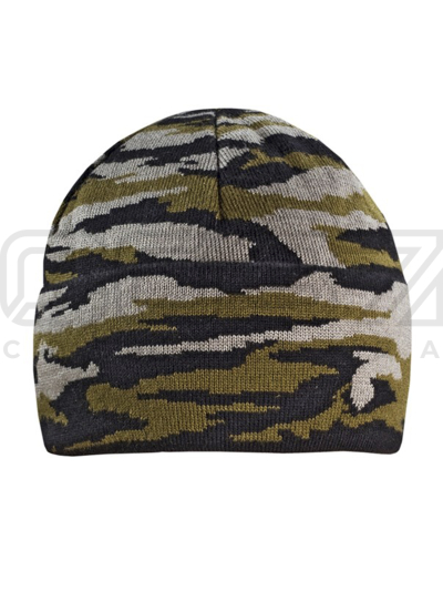 Шапка вязаная "Winter" 2-х нитка с отворотом ут.флис цв.кмф/зелёный тк.акрил в Хабаровске