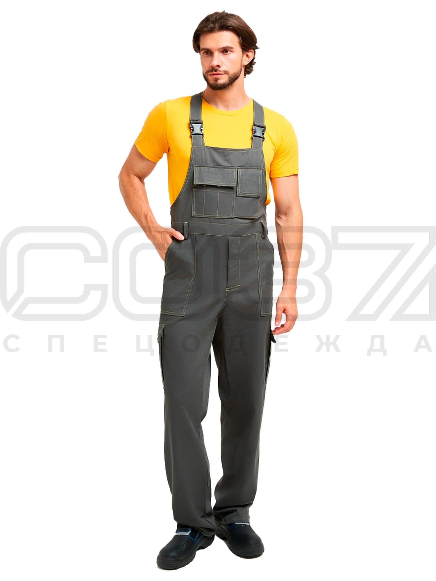 - На передних половинках полукомбинезона два накладных, удлинённых кармана с косым входом.