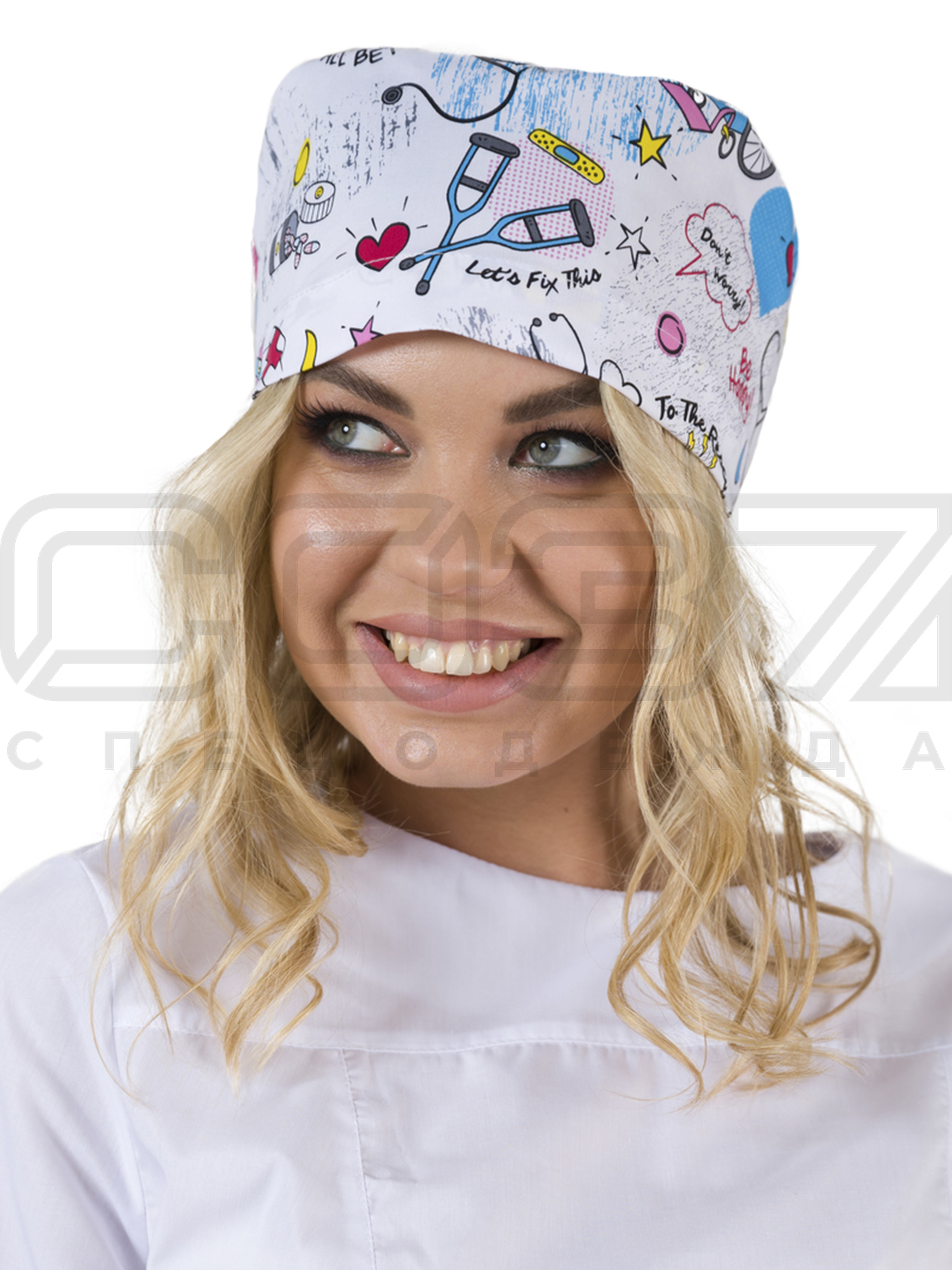 Колпак медицинский на резинке ИМ603(ST10) цв.белый/рисунок тк.стрейч в Хабаровске