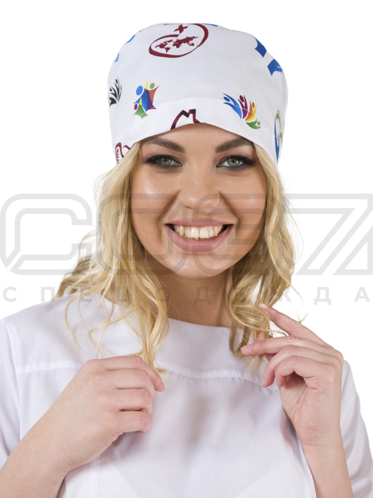 Колпак медицинский на резинке ИМ603(N3-0) цв.белый/рисунок тк.стрейч в Хабаровске
