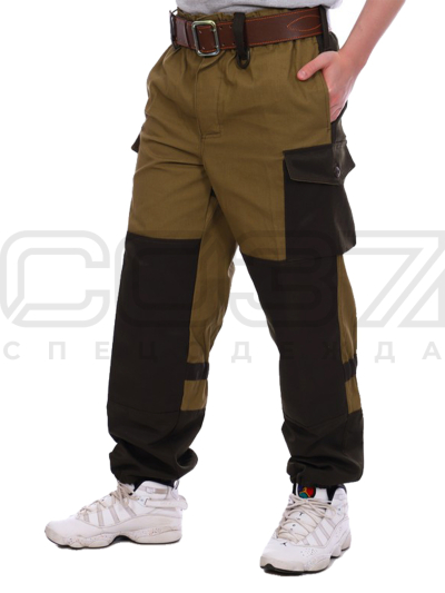 - Два объёмных, накладных кармана с клапаном на пуговицах сбоку, выше уровня колен.